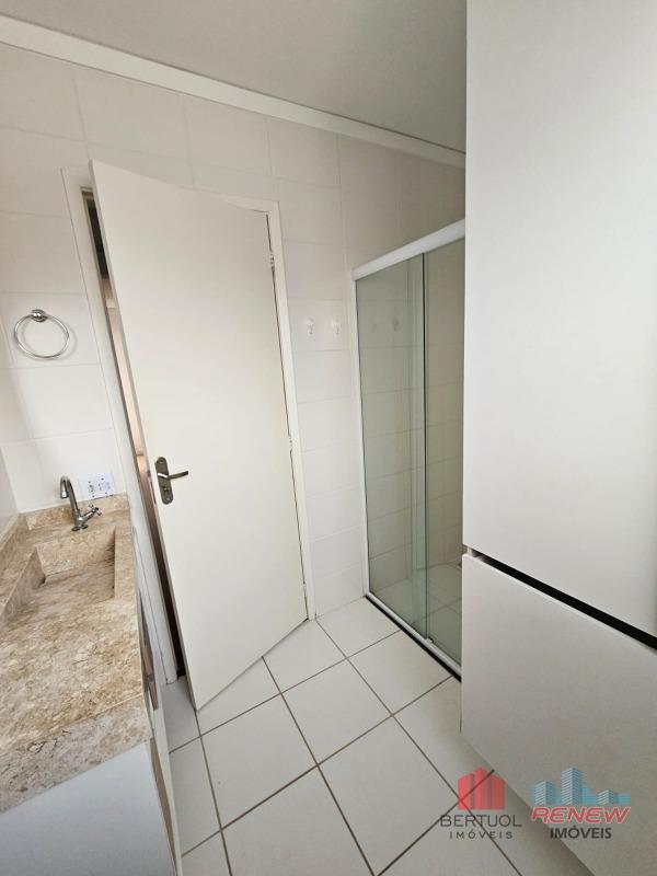 O banheiro, que atende aos dois quartos, segue a mesma linha de design funcional e moderno. Equipado com móveis planejados, o banheiro oferece praticidade e estilo, com acabamentos de qualidade e uma disposição que facilita o dia a dia dos moradores.