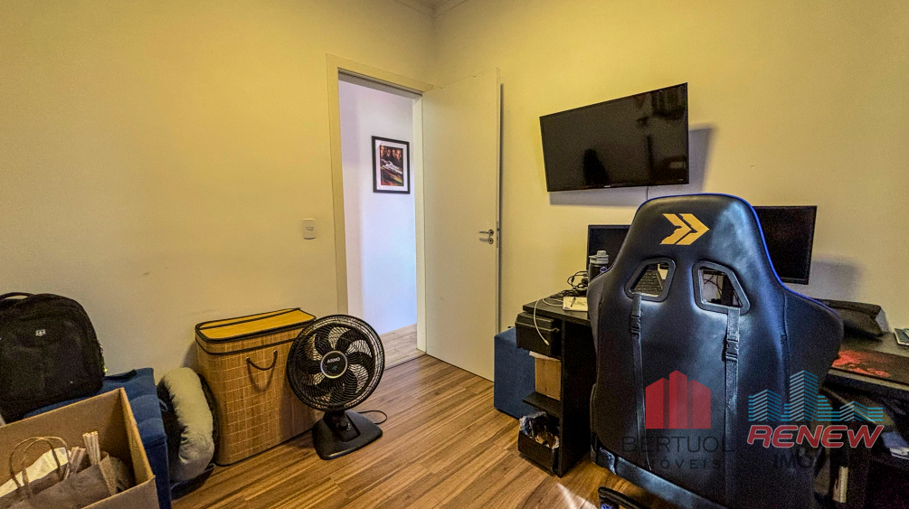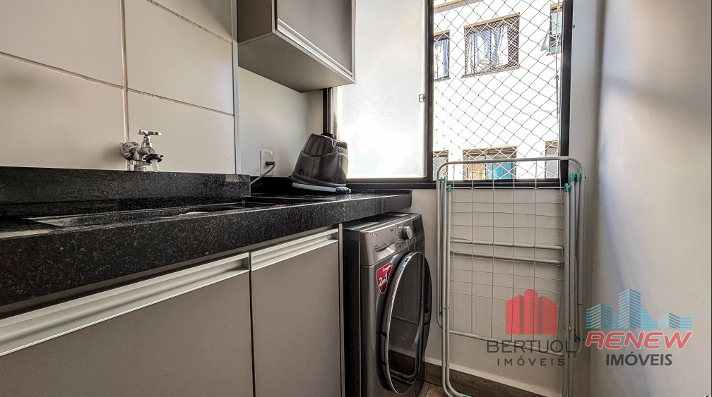 O apartamento conta com dois quartos aconchegantes, bem distribuídos e planejados para garantir conforto e funcionalidade no dia a dia. A cozinha e a lavanderia são equipadas com armários planejados, proporcionando organização e praticidade. O acabamento é de alta qualidade, com piso laminado que confere um toque moderno e elegante ao ambiente. Detalhes sofisticados, como o spot de luz no teto, agregam charme e estilo ao espaço. O banheiro é igualmente bem planejado, com box de vidro e design clean, proporcionando um ambiente funcional e aconchegante.