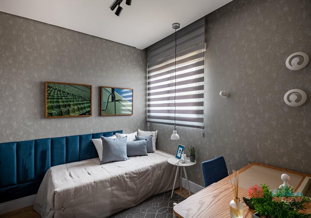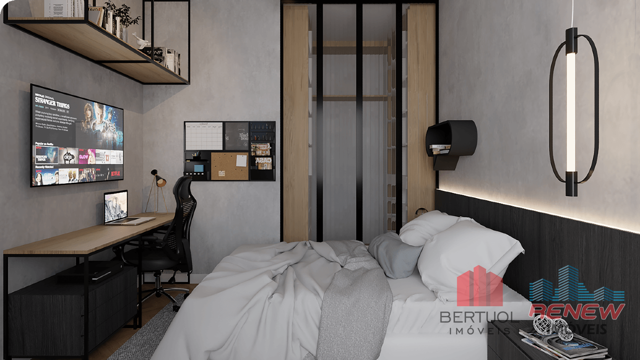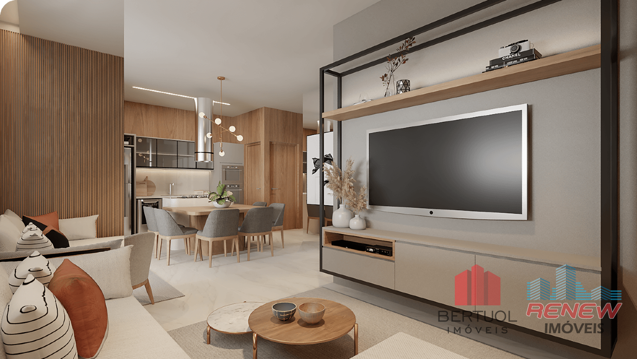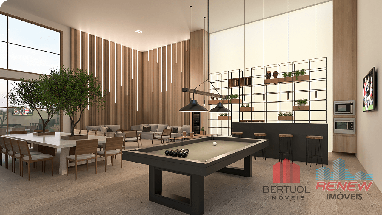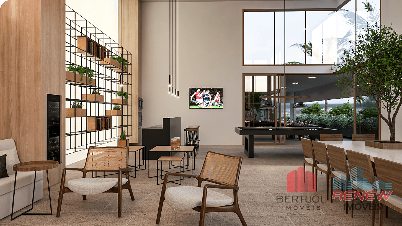 Sala de estar, Sala de jantar, Persianas automatizadas, Gás encanado na cozinha, Tomadas USB nos quartos, Preparação para automação, Chuveiros a gás por aquecedor de passagem, Pontos de ar-condicionado na sala e quartos.