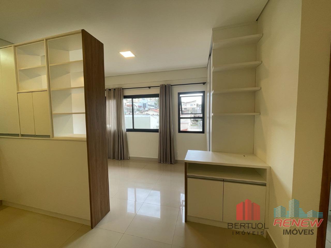 O imóvel conta com um dormitório com armários planejados, sala para dois ambientes com preparação para ar-condicionado, proporcionando conforto térmico e versatilidade na composição do ambiente. O banheiro possui box instalado e chuveiro elétrico, pronto para uso. A cozinha é planejada e equipada com cooktop e depurador de ar, garantindo funcionalidade e praticidade, além de área de serviço integrada. O apartamento dispõe ainda de interfone, agregando mais segurança ao morador. Não possui vaga de garagem.