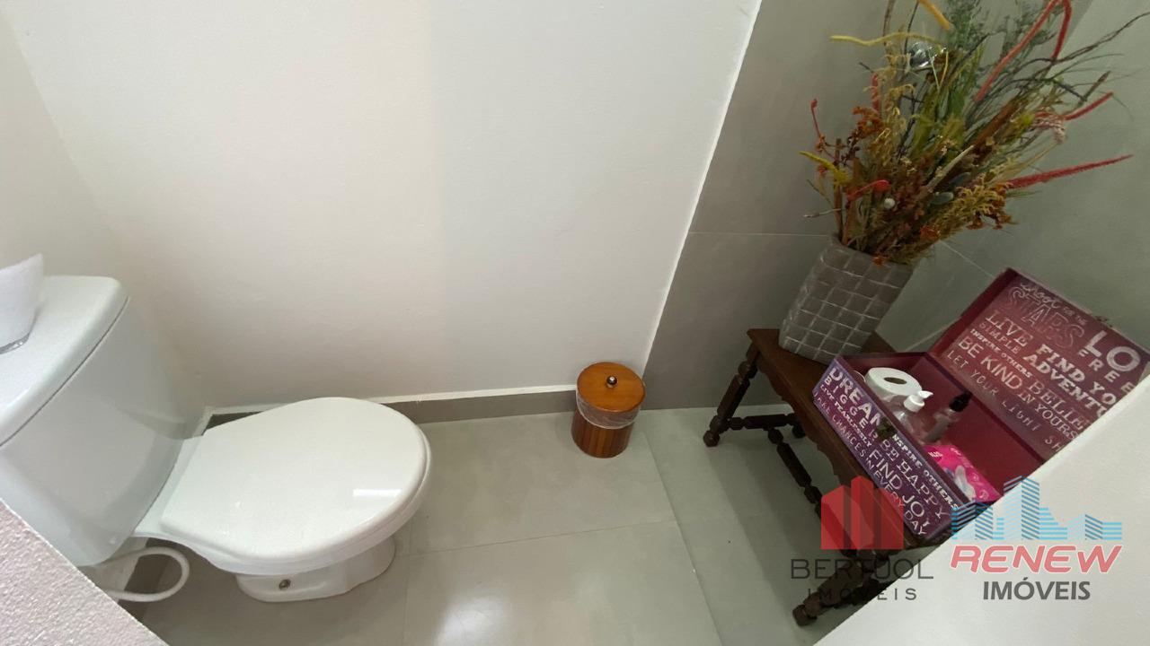 São três suítes confortáveis, incluindo uma suíte especial com dois banheiros e dois closets, ideal para quem valoriza espaço e privacidade. A casa conta ainda com um escritório, lavabo, cozinha planejada e área de serviço bem distribuída. Está preparada para ar-condicionado e aquecimento solar, garantindo mais praticidade e eficiência.