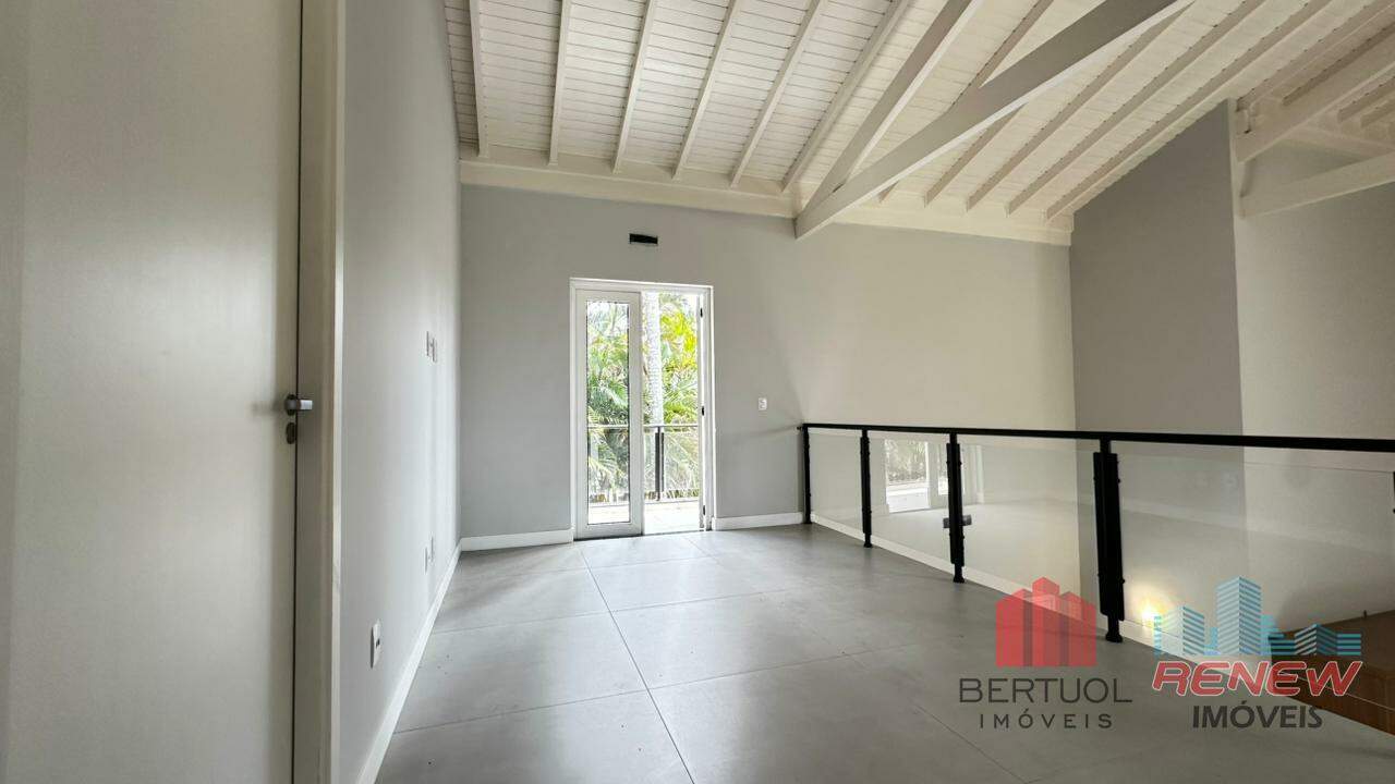 O segundo andar revela uma suíte master elegante, oferecendo privacidade e conforto, enquanto uma sala de TV proporciona um espaço acolhedor para entretenimento e relaxamento.