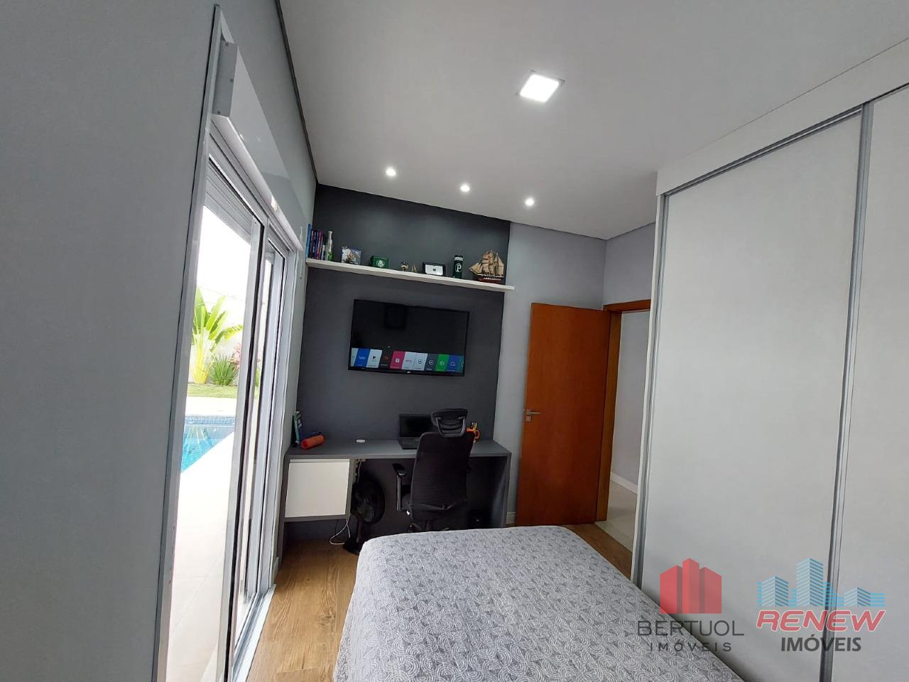 A área de lazer é um dos grandes destaques do imóvel, com piscina aquecida com hidromassagem, perfeita para momentos de descanso e lazer em qualquer época do ano, integrada à área gourmet coberta, ideal para receber amigos e familiares. O imóvel dispõe ainda de lavabo externo, lavanderia coberta, depósito e garagem coberta para dois carros. Pensada para oferecer conforto e eficiência, a casa conta com infraestrutura preparada para ar-condicionado, sistema de água aquecida e energia fotovoltaica, agregando economia e sustentabilidade.