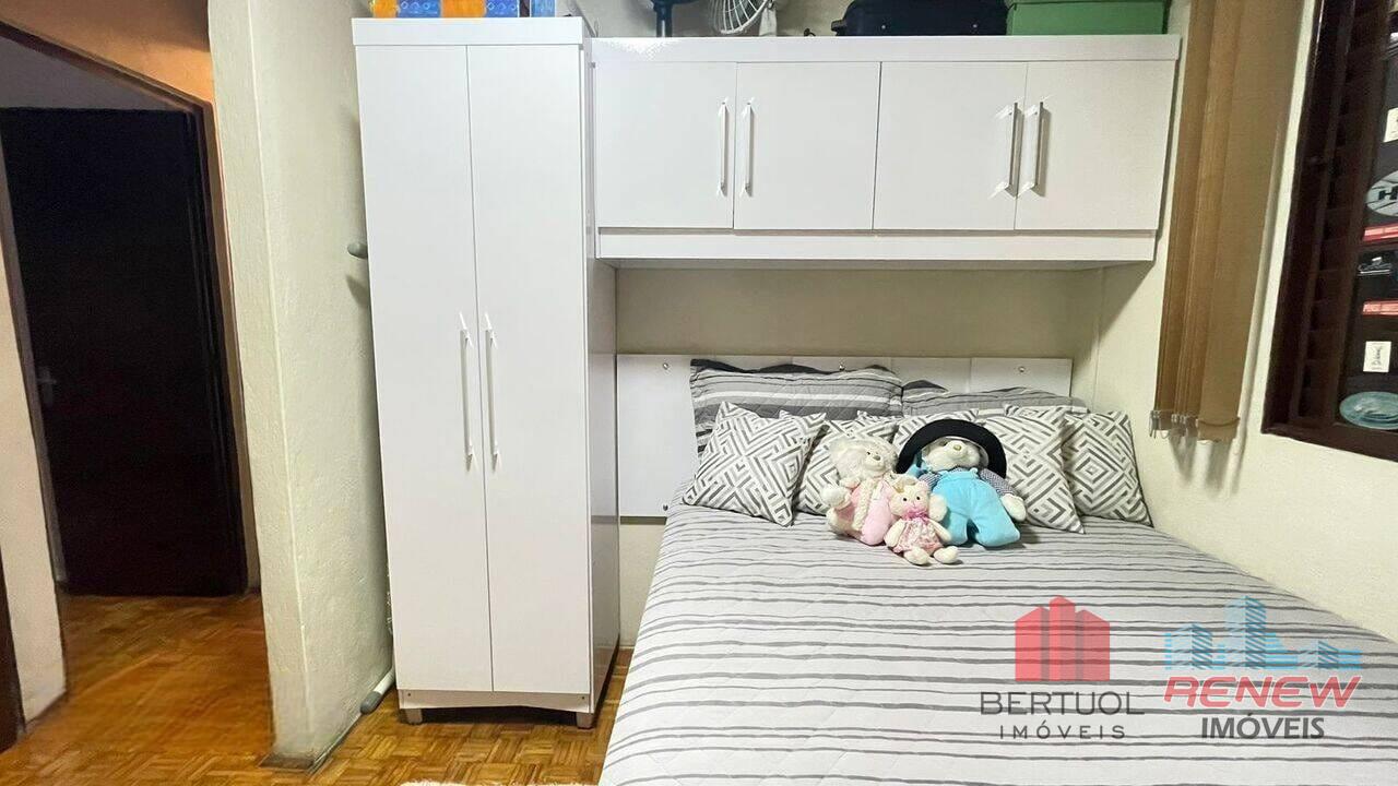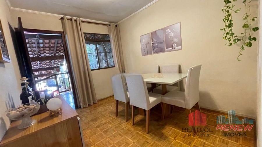O imóvel conta com três dormitórios bem distribuídos, um banheiro social e uma sala de estar confortável, criando um ambiente acolhedor para o convívio diário. A cozinha possui armários planejados, proporcionando organização e praticidade, além de contar com área de serviço integrada e varanda, que amplia a ventilação e a iluminação natural dos ambientes. Nos fundos, há um espaço com excelente potencial para implantação de uma área gourmet, ideal para quem deseja criar um ambiente de lazer e confraternização. O imóvel dispõe ainda de duas vagas de garagem e jardim, que contribuem para o charme e a funcionalidade da casa.