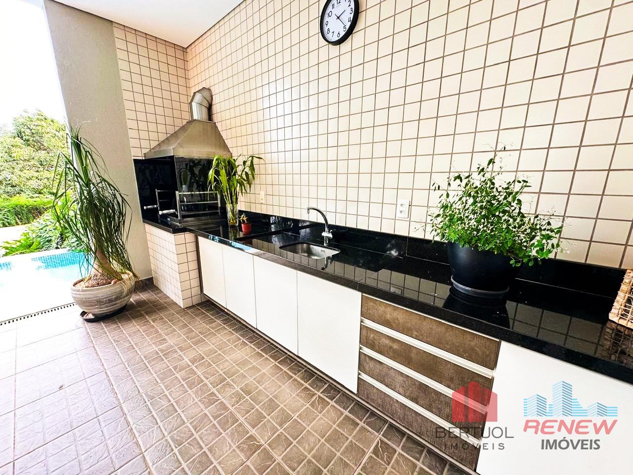 No pavimento inferior, a casa oferece um quarto de apoio, lavabo, lavanderia e uma sala ampla com dois ambientes integrados à cozinha moderna, proporcionando praticidade e fluidez no dia a dia. O espaço gourmet foi cuidadosamente planejado para receber amigos e familiares com conforto e elegância, tornando-se um dos grandes destaques do imóvel.