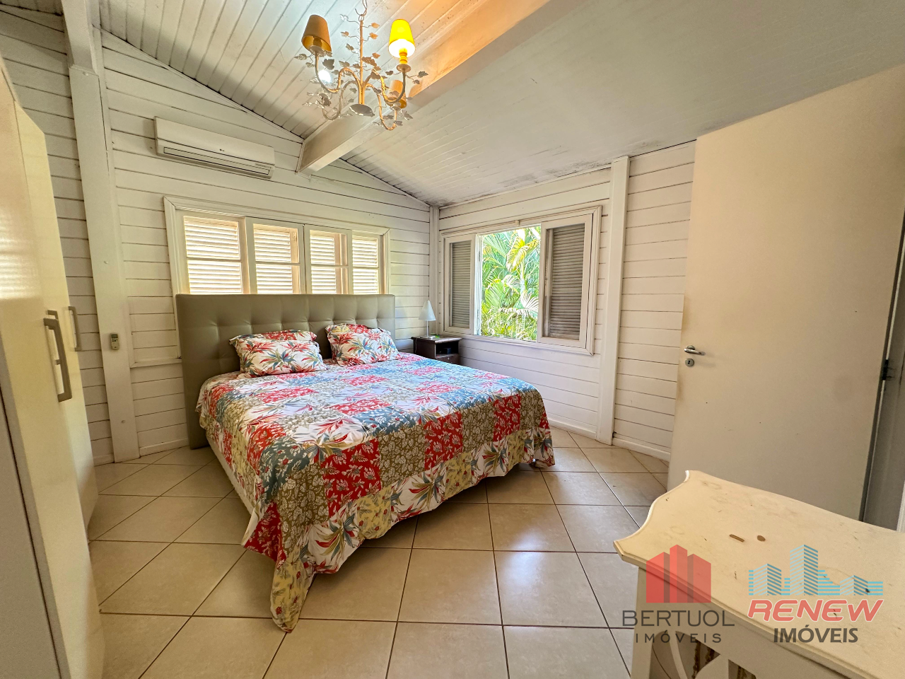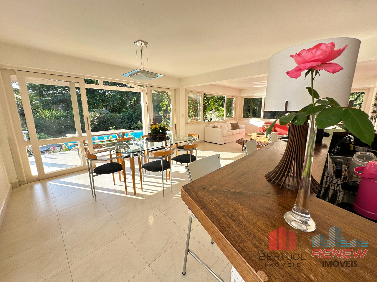 A residência conta com quatro dormitórios, todos suítes, garantindo mais privacidade e conforto para a família. Ao todo, são seis banheiros, atendendo perfeitamente tanto a área íntima quanto os espaços sociais. As duas salas oferecem ambientes aconchegantes e versáteis, ideais para convivência, descanso e recepção de convidados.