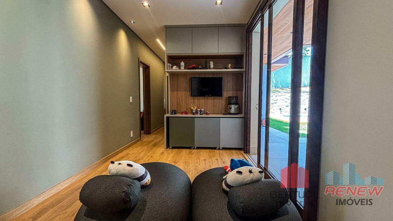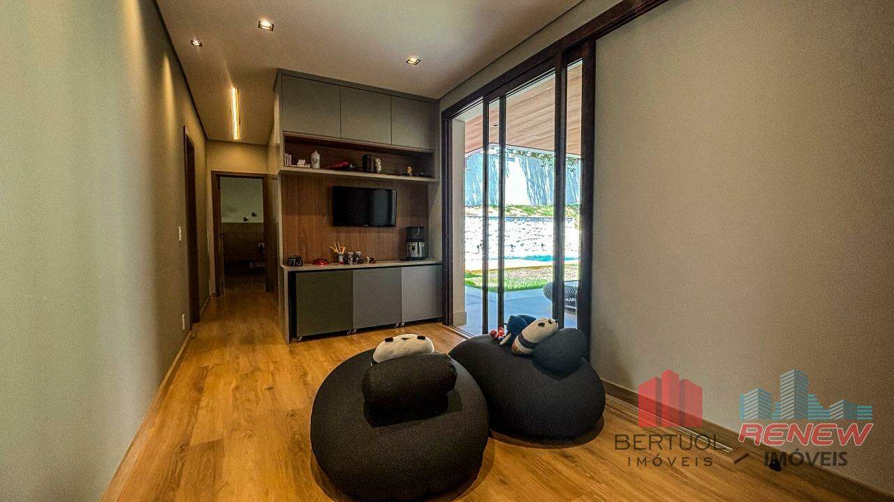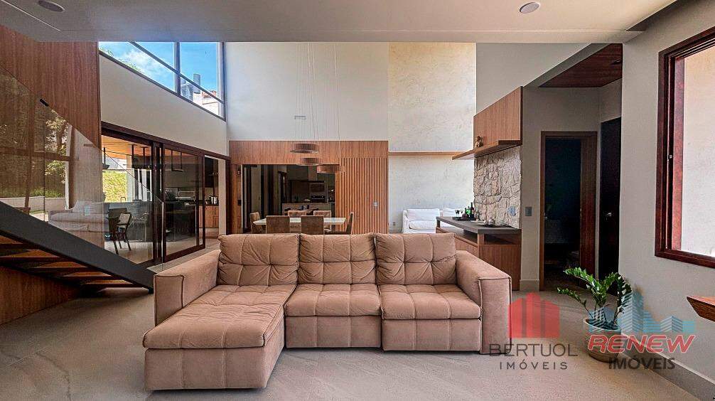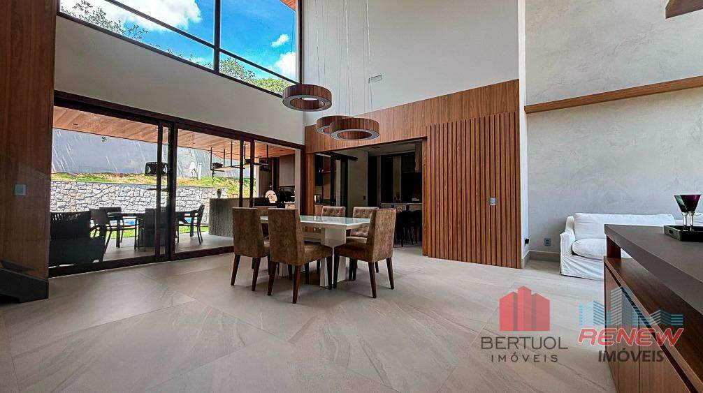 Casa térrea á venda no Condomínio Marambaia, em Vinhedo, recém-construída e entregue em julho de 2024, que representa o equilíbrio perfeito entre sofisticação e conforto. O projeto moderno privilegia a amplitude dos ambientes e a integração dos espaços, oferecendo uma experiência de moradia fluida e funcional. Logo na entrada, a residência impressiona pela elegância e luminosidade natural, com salas de estar, jantar e TV que se conectam de forma harmônica à cozinha e à área gourmet, criando o cenário ideal para receber amigos e familiares.