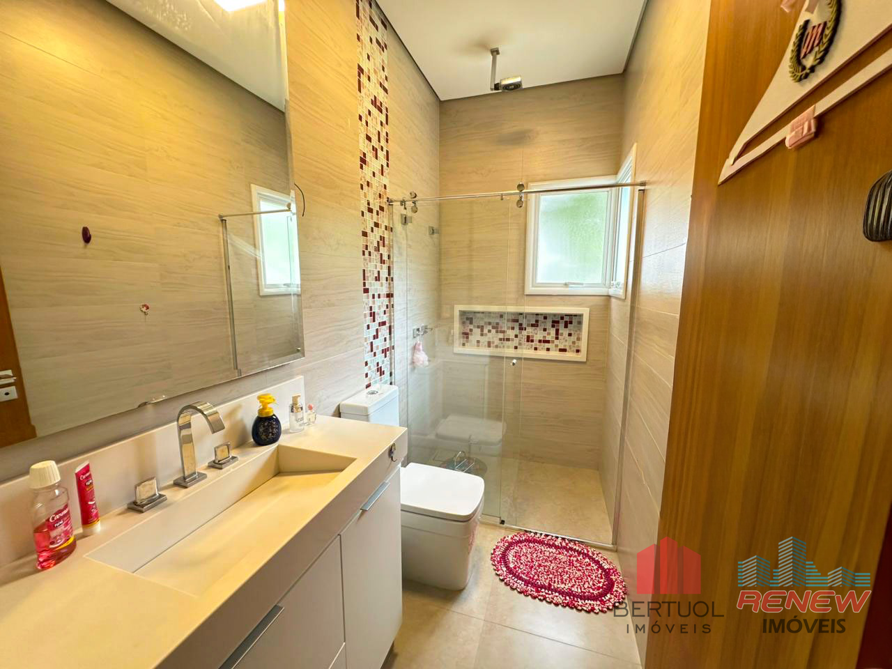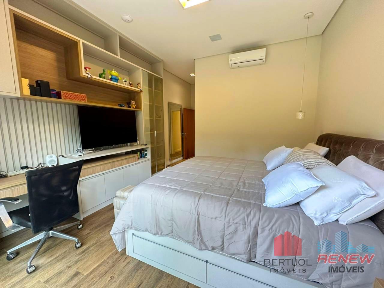 O imóvel conta com três suítes com closet, além de uma suíte adicional, garantindo conforto e privacidade para toda a família. A área íntima se complementa com home, escritório e estúdio, criando possibilidades para home office, espaço criativo ou ambientes multifuncionais conforme a necessidade dos moradores. A casa possui ar-condicionado em todos os cômodos, lavabo e ambientes integrados de sala de TV, jantar e cozinha, proporcionando fluidez na circulação e favorecendo a convivência. O sistema de som integrado e a automação residencial elevam o padrão de conforto, permitindo controle inteligente de diversos recursos da casa, enquanto a energia solar fotovoltaica e o aquecimento solar reforçam a proposta de eficiência energética e redução de custos operacionais.