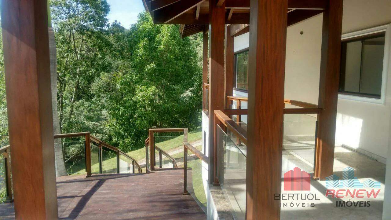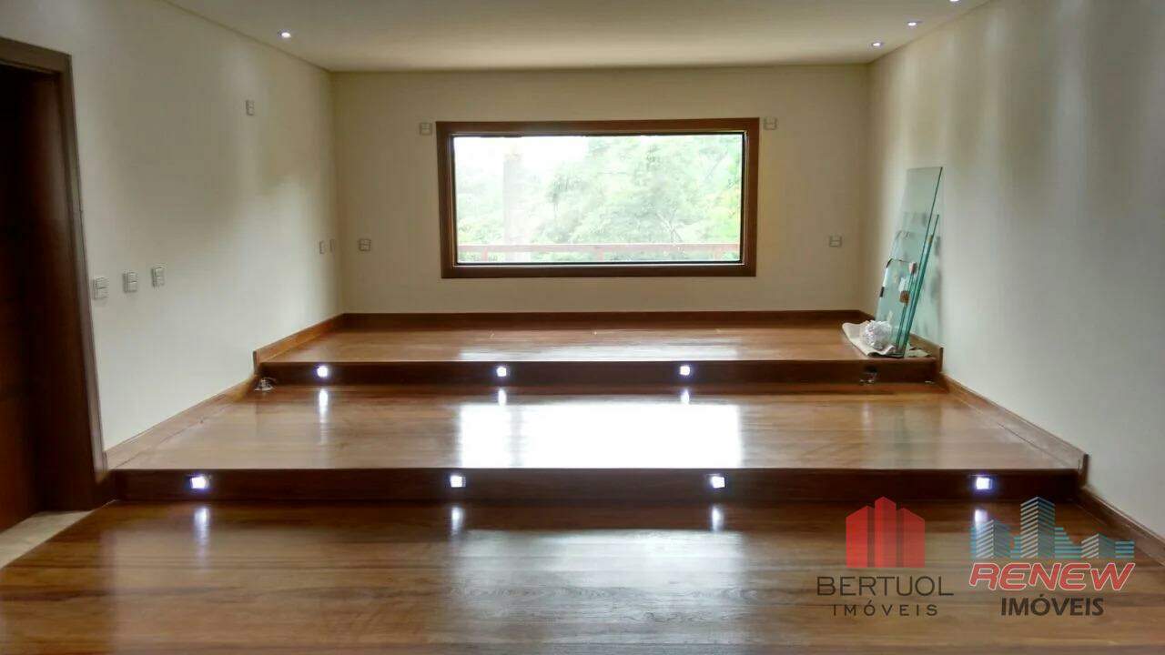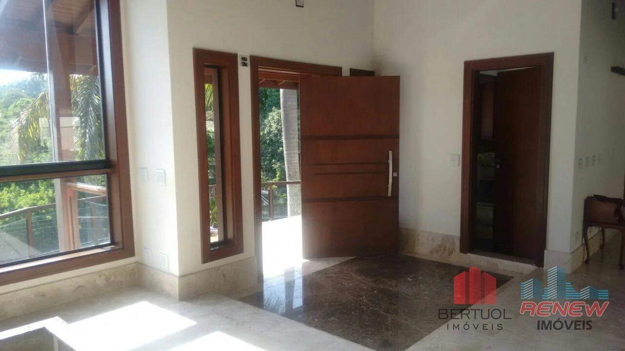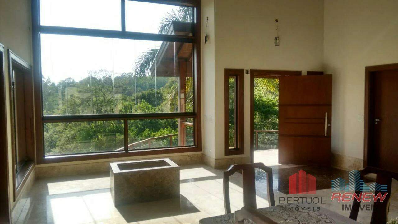 Casa de alto padrão à venda no Condomínio Parque dos Manacás, em Jundiaí, uma das regiões mais exclusivas e valorizadas da cidade, perfeita para quem busca privacidade, contato com a natureza e uma estrutura residencial de excelência. Em um terreno imponente de 5200m², sendo 2500m² de bosque com mata nativa, a residência oferece 915m² de área construída em um único pavimento, garantindo fluidez e conforto absoluto. O projeto contempla quatro suítes amplas com sacadas independentes, duas delas com hidromassagem e três com closet, além de um dormitório adicional que complementa o espaço interno. O living com mais de 100m² e pé direito de 7 metros traz imponência e sofisticação, acompanhado por sala de cinema, escritório, academia e uma varanda gourmet completa com churrasqueira, forno de pizza e fogão a lenha. A piscina em alvenaria com 75 mil litros, prainha, hidromassagem e iluminação destaca-se como ponto central de lazer. A casa conta ainda com apartamento independente no pavimento inferior, vestiários, dependência de empregada, depósito e canil.