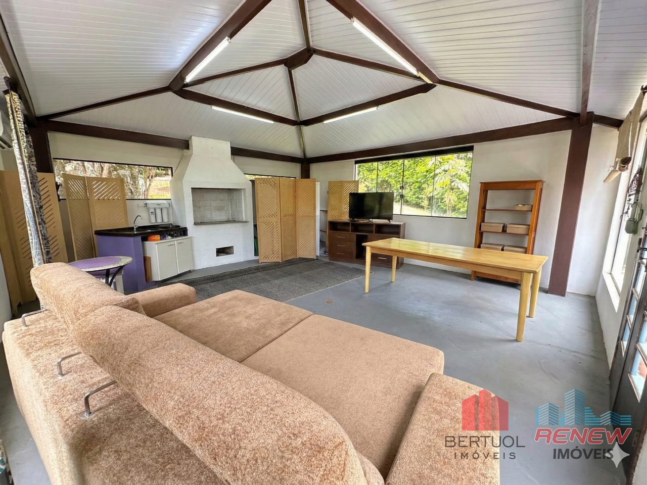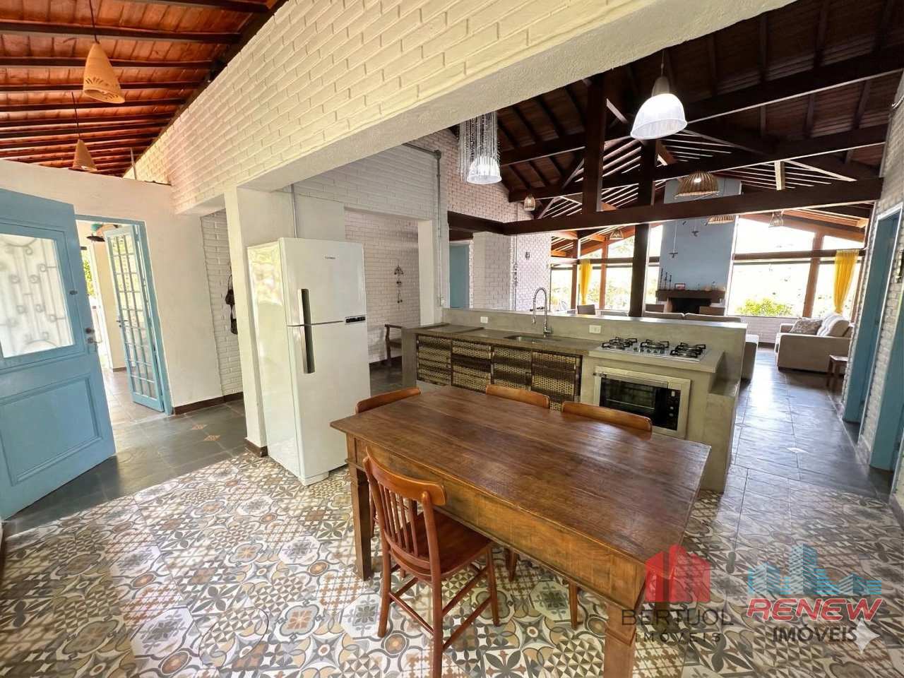 Na área íntima, o imóvel conta com três dormitórios, sendo uma suíte, além de dois banheiros que atendem aos demais ambientes. Todos os espaços apresentam excelente iluminação natural e uma atmosfera agradável. A lavanderia foi totalmente reformada e ampliada, trazendo mais funcionalidade e organização para a rotina da casa.