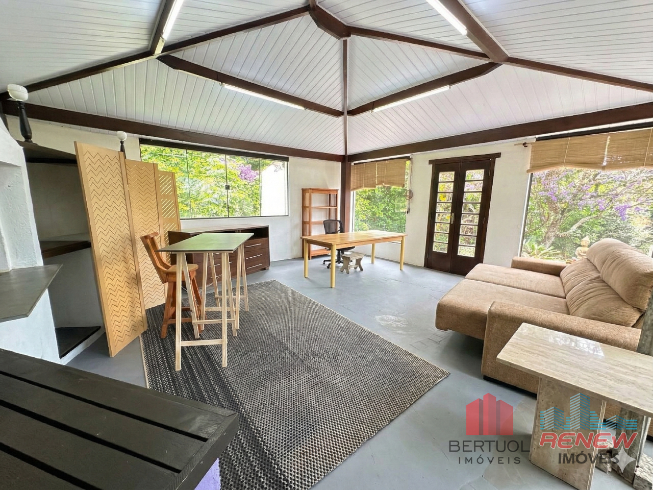 Como diferencial, a propriedade possui um apartamento independente de aproximadamente 50 m² localizado abaixo da piscina, ideal para hóspedes, locação ou uso versátil como ateliê, espaço wellness ou acomodação adicional. Há também um escritório externo envidraçado de 30 m² com vista para o verde, perfeito para home office, consultório ou estúdio criativo.