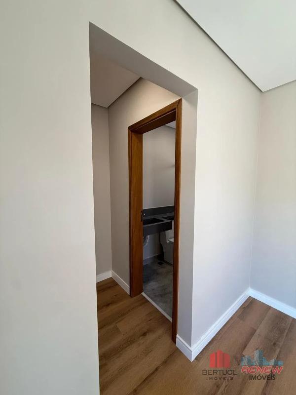 A casa possui quatro vagas de garagem, sendo duas cobertas, além de acabamentos que valorizam o projeto, como iluminação instalada em todos os ambientes, metais já instalados em toda a residência e banheiros equipados com box. A imponente porta de entrada pivotante, com aproximadamente quatro metros de altura e fechadura eletrônica, reforça o padrão moderno e sofisticado do imóvel.