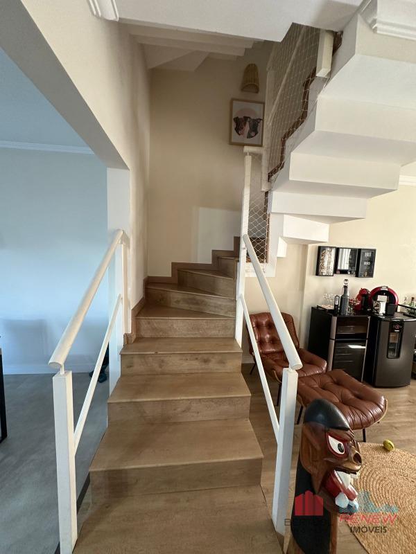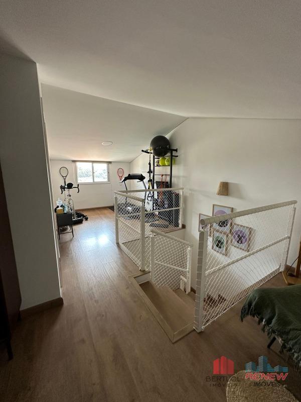No pavimento superior, o hall de circulação dá acesso aos três dormitórios, sendo uma suíte, todos com armários planejados, além de banheiro social que atende aos demais quartos. A casa conta ainda com um sótão multifuncional, com grande potencial de uso, podendo ser adaptado para academia, escritório, sala de TV, ateliê ou espaço de apoio, conforme a necessidade do morador.