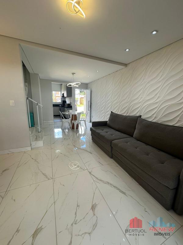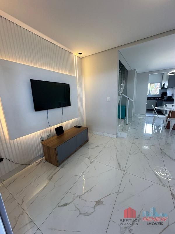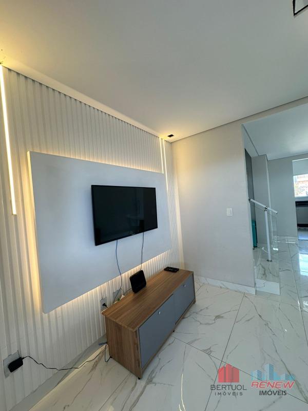 Com 110 m² de área construída, a casa conta com duas suítes, sendo uma delas com closet, além de um escritório planejado ideal para home office. A sala de TV é aconchegante e se integra harmoniosamente à cozinha moderna, que possui lavanderia funcional e armários de excelente qualidade. O imóvel ainda dispõe de três banheiros e uma varanda gourmet fechada com vidro e telhado, ideal para momentos de lazer e convivência.