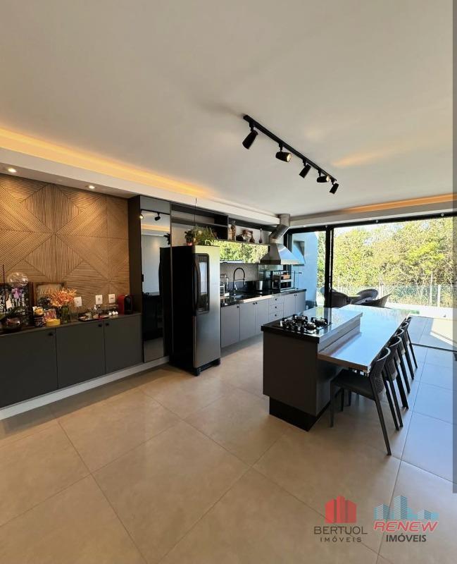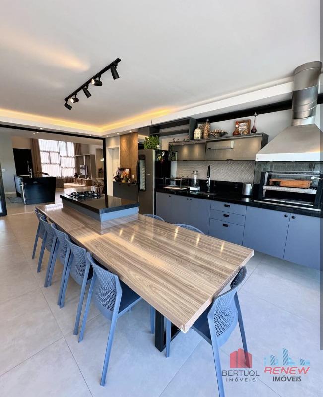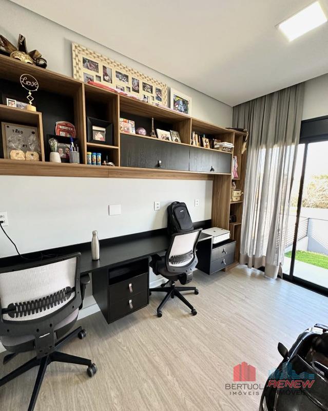 O imóvel oferece três suítes amplas e bem distribuídas, sendo a suíte master equipada com closet e hidromassagem, proporcionando um ambiente exclusivo de descanso e bem-estar. Há ainda um escritório versátil, com potencial para ser convertido em uma quarta suíte, atendendo diferentes necessidades familiares. A área social é integrada e funcional, com cozinha gourmet equipada com ilha central, conectada à área gourmet externa, criando um espaço perfeito para convivência e recepção. A área de lazer conta com piscina aquecida, ideal para uso em todas as estações do ano, além de excelente aproveitamento do espaço externo. A residência dispõe de ar-condicionado em todos os ambientes e sete vagas de garagem, sendo duas cobertas, garantindo praticidade e conforto no dia a dia.