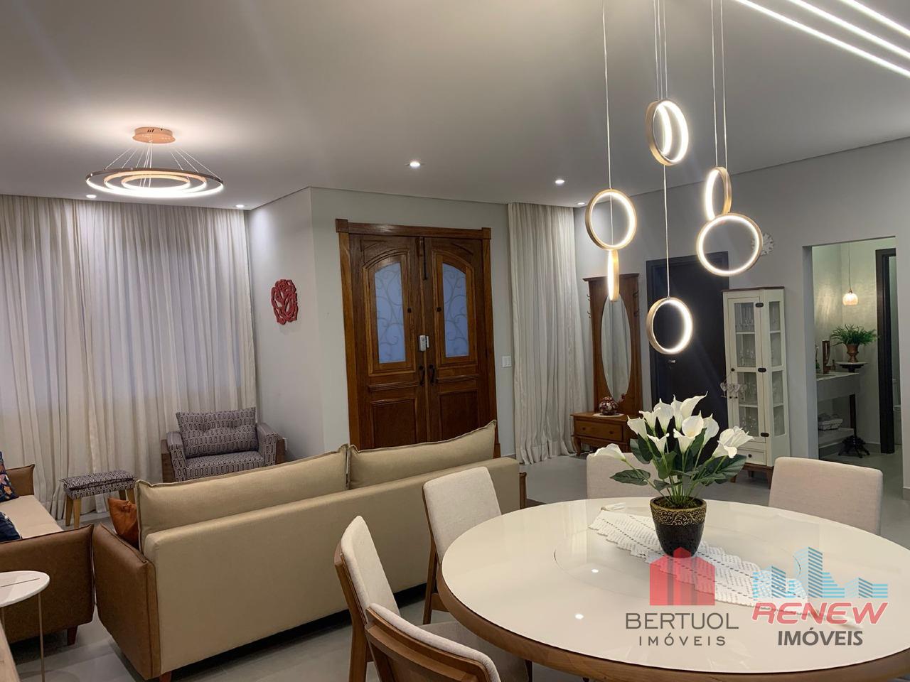 A casa possui 3 dormitórios, sendo 1 suíte, 04 banheiros, sala ampla, cozinha, lavanderia, garagem para 6 carros, aquecimento solar da agua, piscina aquecida e boiler