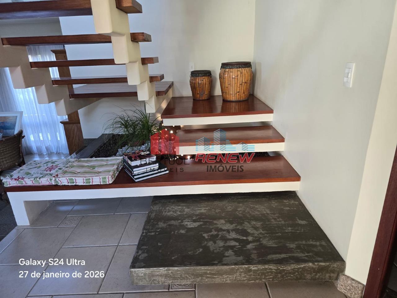 O imóvel conta com três dormitórios, todos suítes, garantindo conforto e privacidade para os moradores, além de quatro banheiros bem distribuídos que atendem com eficiência a rotina da casa. A área social se destaca pela ampla sala distribuída em três ambientes em diferentes níveis, criando uma atmosfera aconchegante, com forro em madeira aparente e escada rústica que valorizam o charme arquitetônico da residência. O mezanino abriga uma sala de estar adicional e um espaço ideal para escritório ou home office, complementando a funcionalidade do imóvel. A cozinha é ampla e bem planejada, com despensa, lavanderia, área de serviço e banheiro de apoio, atendendo com praticidade as necessidades do dia a dia. A suíte master se diferencia pelo closet e pela banheira de hidromassagem, proporcionando uma experiência de conforto e bem-estar. O imóvel conta ainda com lareira, sala de jantar, ar-condicionado e armários planejados em todos os dormitórios, além de seis vagas de garagem que garantem comodidade para moradores e visitantes.