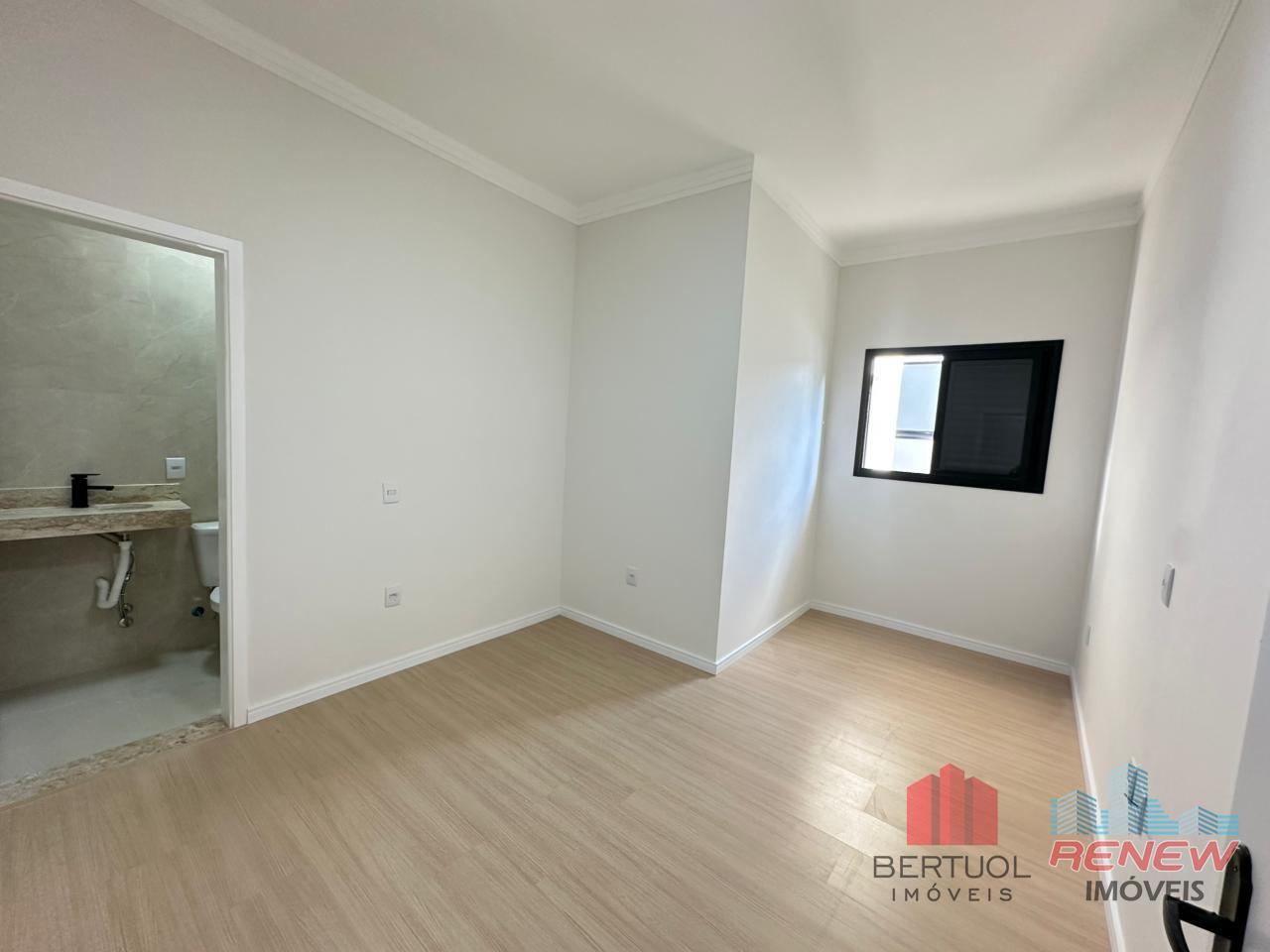 O imóvel dispõe de três dormitórios, sendo duas suítes, incluindo uma suíte master com closet, proporcionando privacidade e comodidade no dia a dia. O banheiro social atende de forma prática os demais ambientes e visitas. A área social é composta por uma sala ampla integrada à cozinha espaçosa, criando um ambiente contemporâneo, bem iluminado e ideal para convivência, além de favorecer a ventilação natural e a integração entre os espaços.