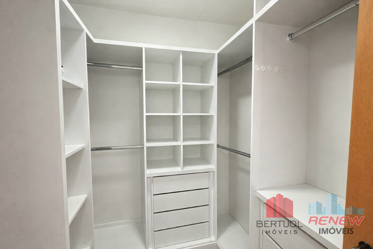 A área íntima conta com três quartos, sendo dois deles em estilo suíte americana e a suíte principal com um closet espaçoso. Todos os quartos oferecem ar-condicionado e móveis planejados novíssimos, criando um ambiente aconchegante e pronto para morar. Um escritório reservado, com ponto para ar-condicionado, oferece o espaço ideal para trabalhar ou estudar com tranquilidade.