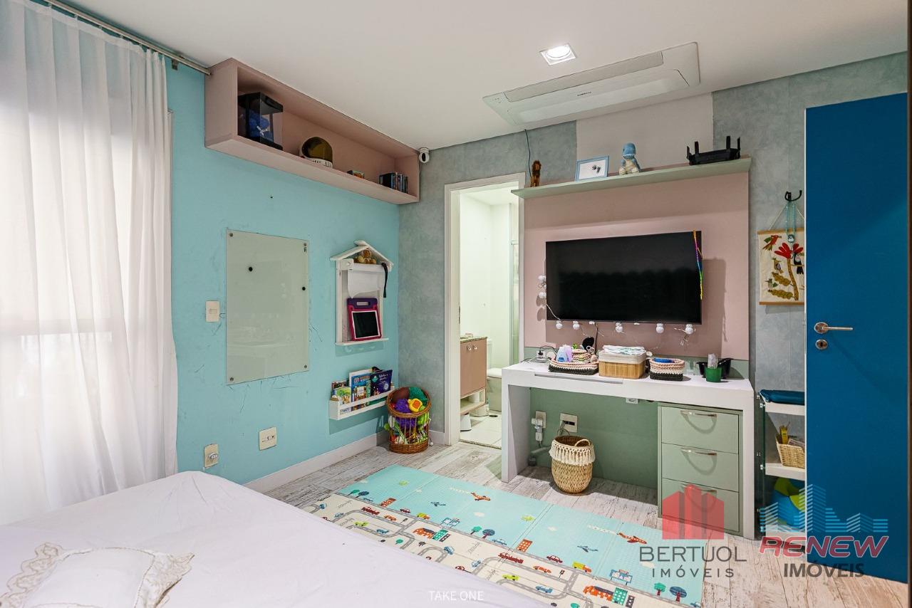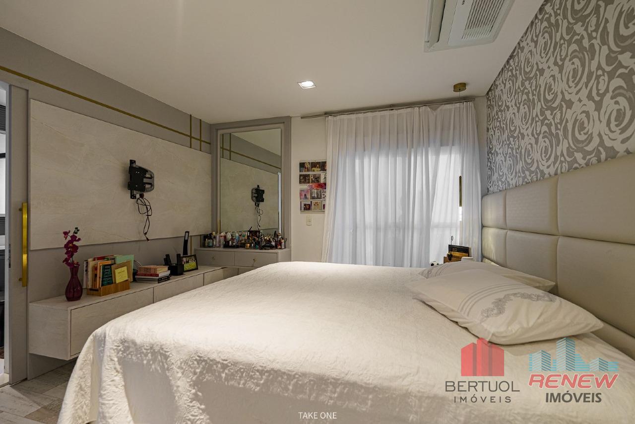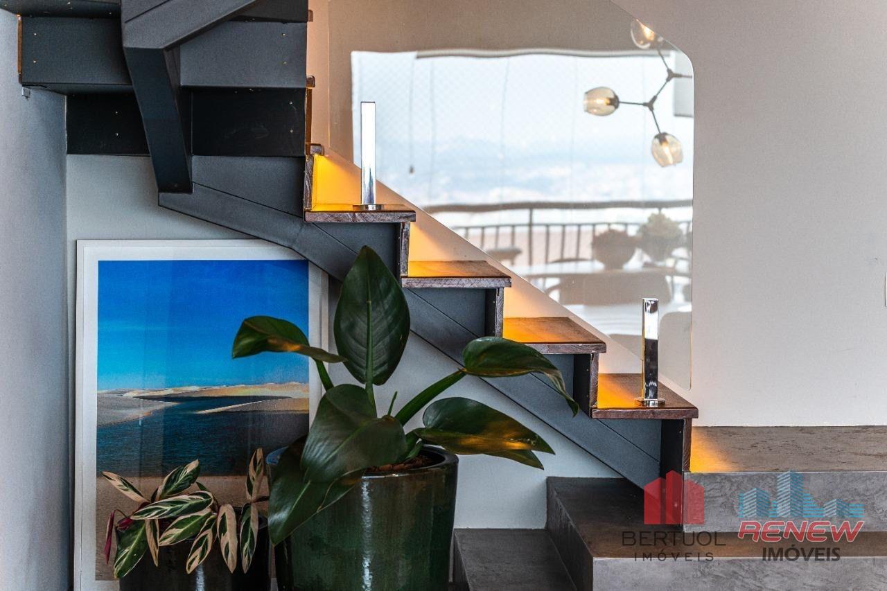 Os ambientes são amplos, integrados e cuidadosamente planejados para proporcionar fluidez e elegância. A área social reúne sala de estar, jantar e TV em perfeita integração com a varanda gourmet, criando um cenário ideal para receber amigos e familiares ou simplesmente contemplar o pôr do sol com uma vista inspiradora da cidade. A cobertura conta ainda com piscina privativa aquecida, deck e paisagismo, oferecendo um espaço exclusivo de lazer e relaxamento. A área íntima dispõe de quatro suítes confortáveis, sendo a suíte master equipada com banheira Jacuzzi, closet e varanda privativa, garantindo privacidade e bem-estar. O imóvel possui também home office planejado, cozinha moderna com móveis sob medida, acabamentos de alto padrão, sistema de ar-condicionado central Samsung com controle Wi-Fi em todos os ambientes, pisos Portobello, marcenaria personalizada e reforma completa que elevou o padrão do imóvel. São seis vagas de garagem demarcadas, além de depósito privativo.