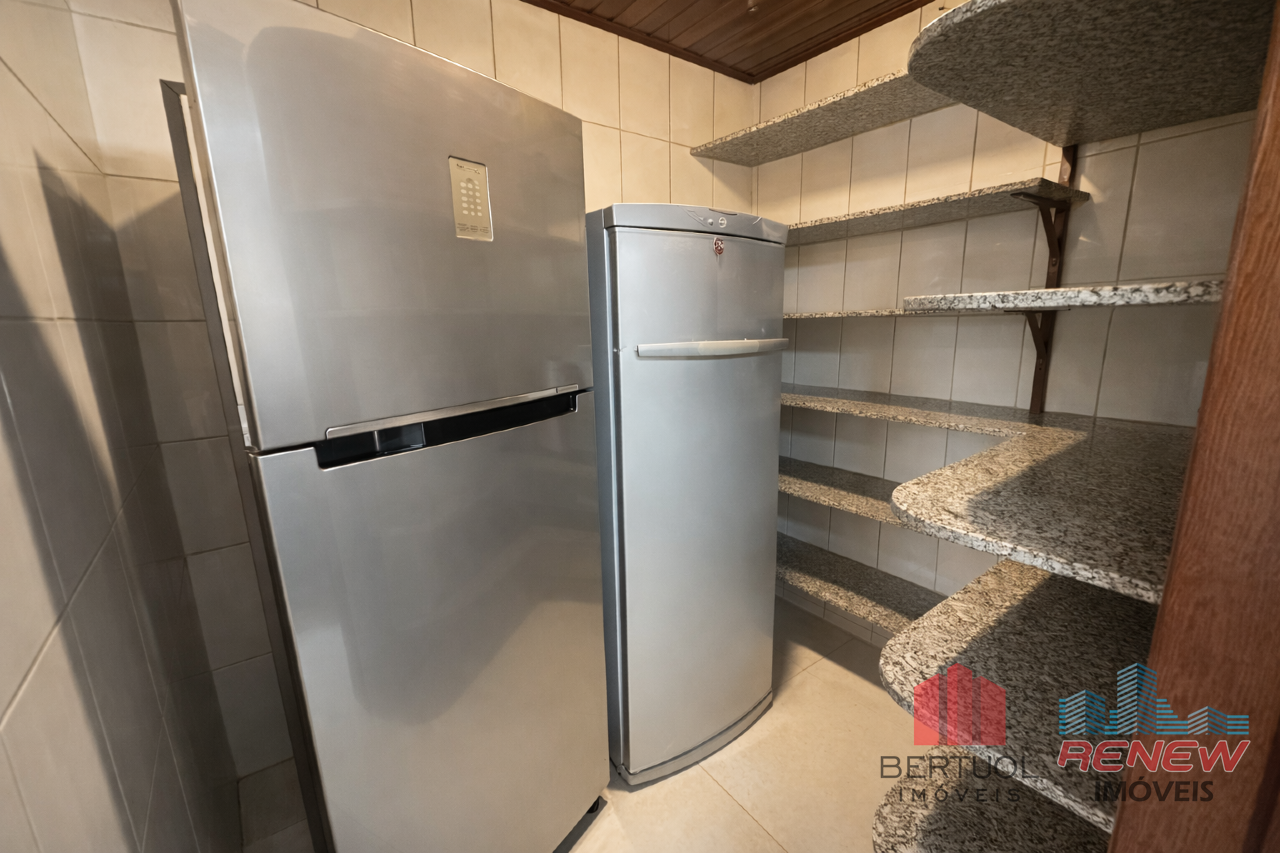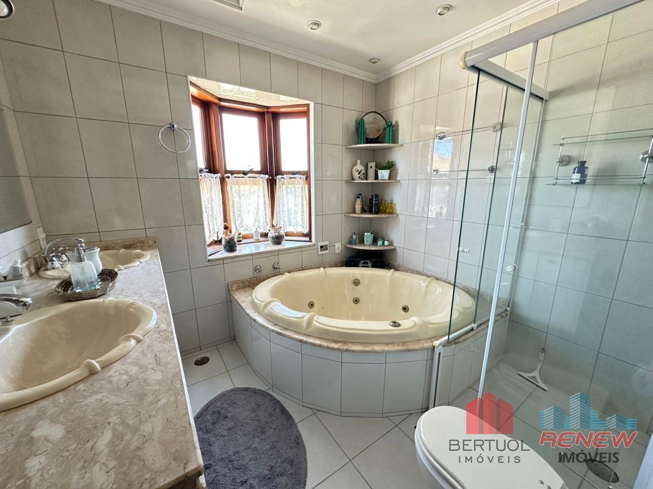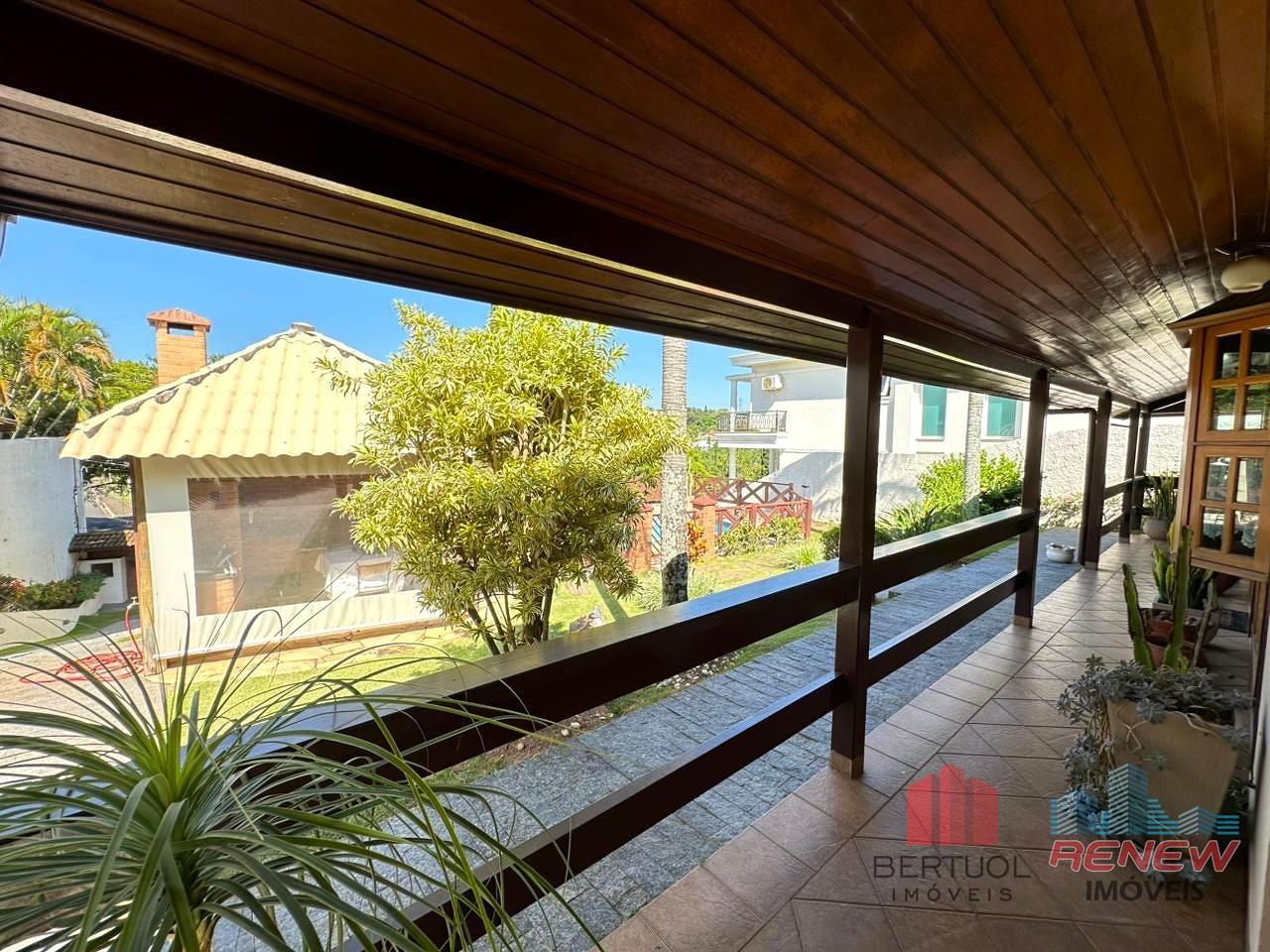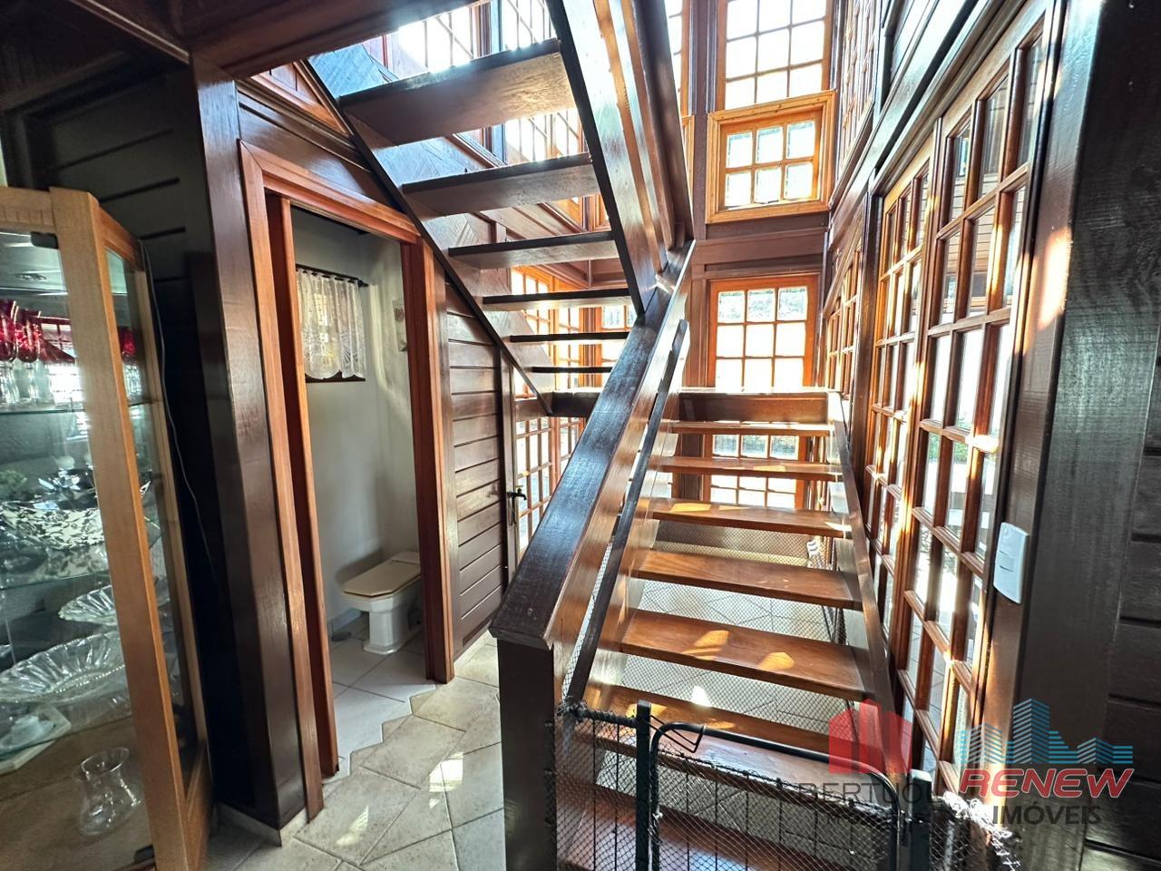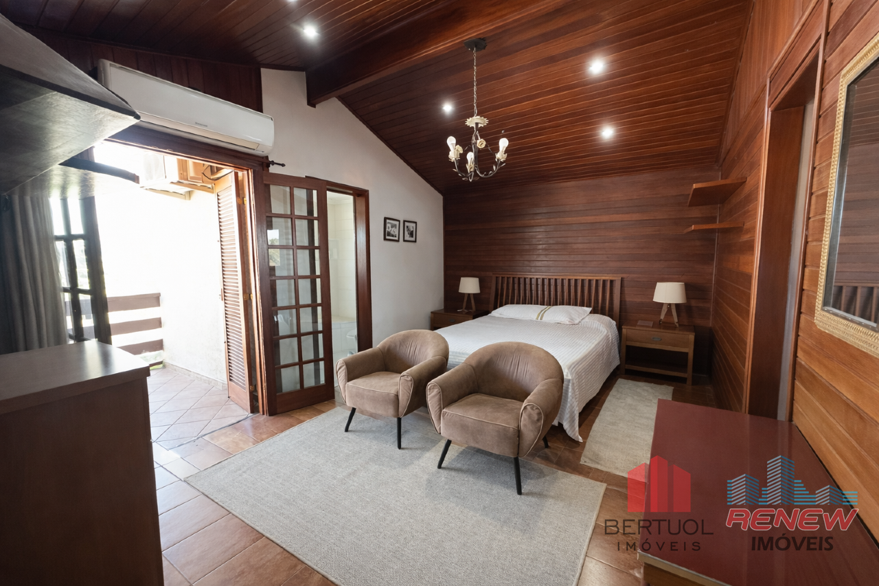 O imóvel conta com quatro dormitórios, sendo duas suítes, incluindo uma suíte master no piso superior com closet, hidromassagem e varanda privativa. Possui três salas amplas com pé direito alto, lareira e excelente iluminação natural, além de lavabo e banheiro adicional com hidromassagem. A cozinha americana com piso em porcelanato é integrada e funcional, acompanhada de despensa, área de serviço e suíte de apoio. Toda a casa é avarandada, favorecendo ventilação cruzada e conforto térmico.