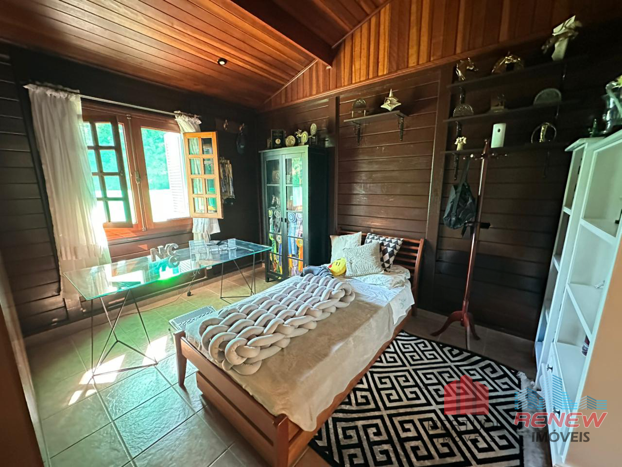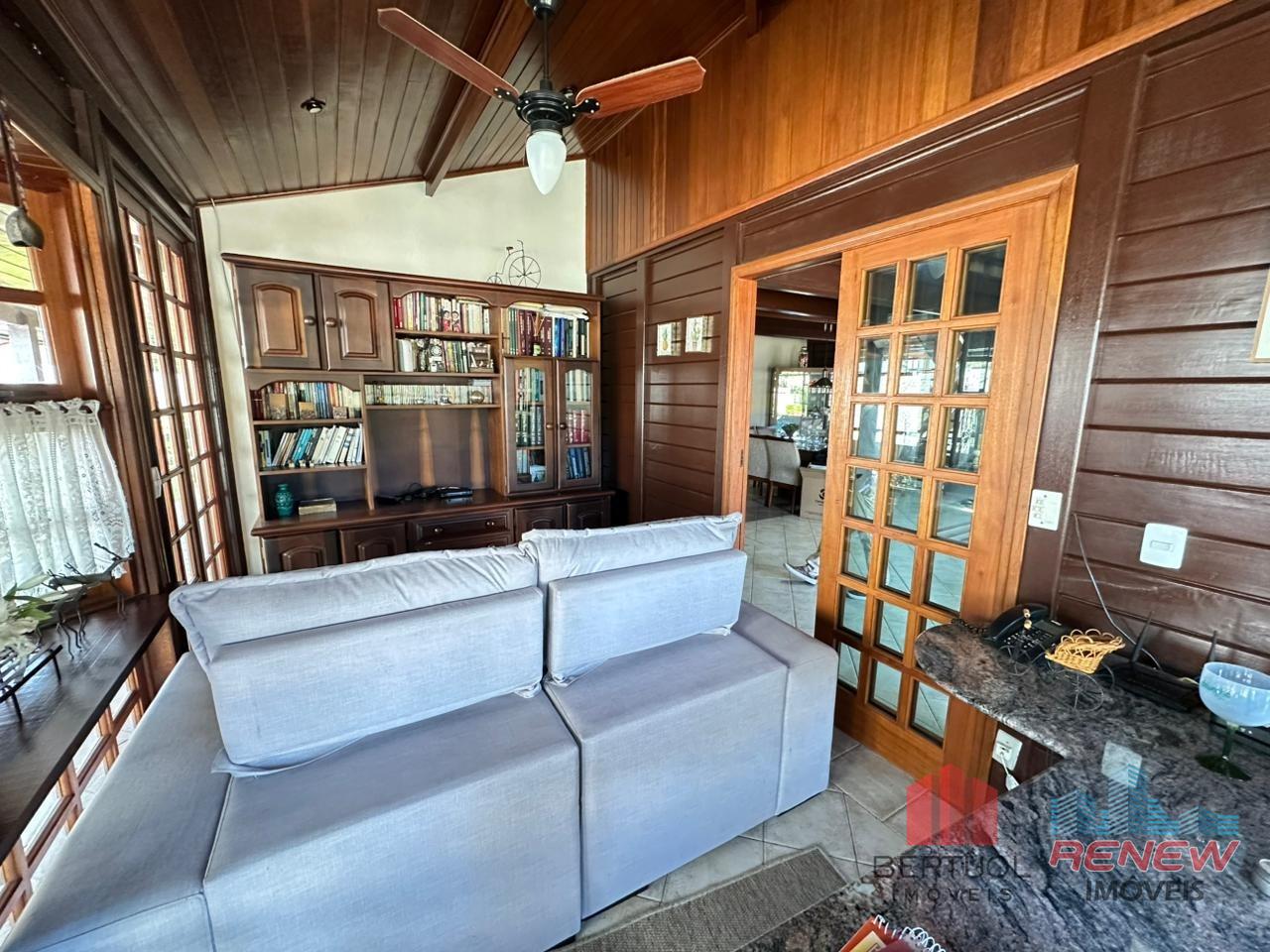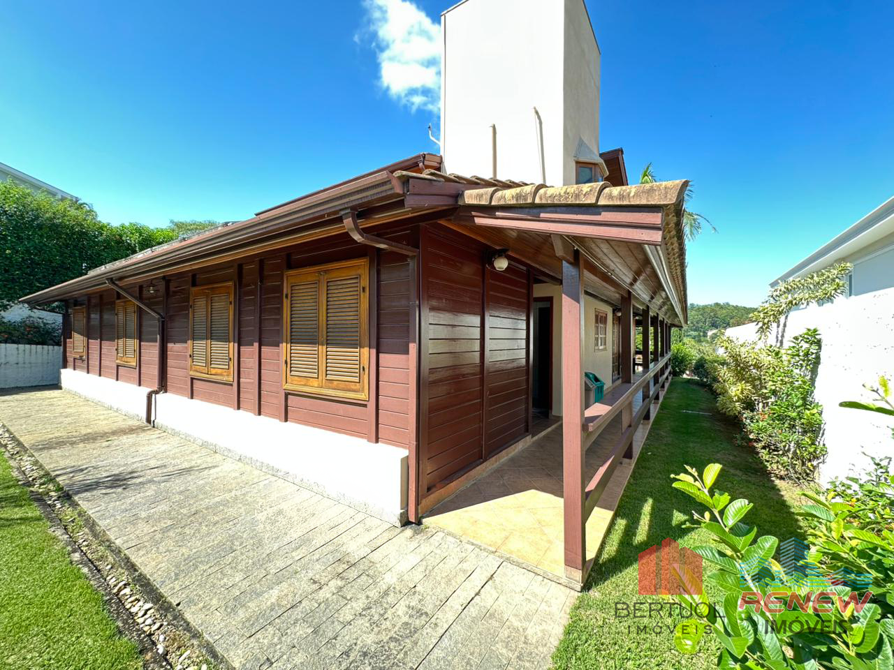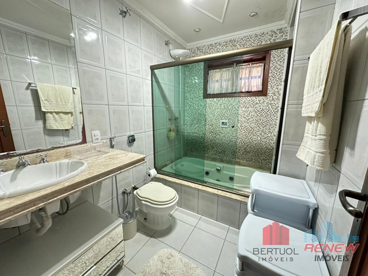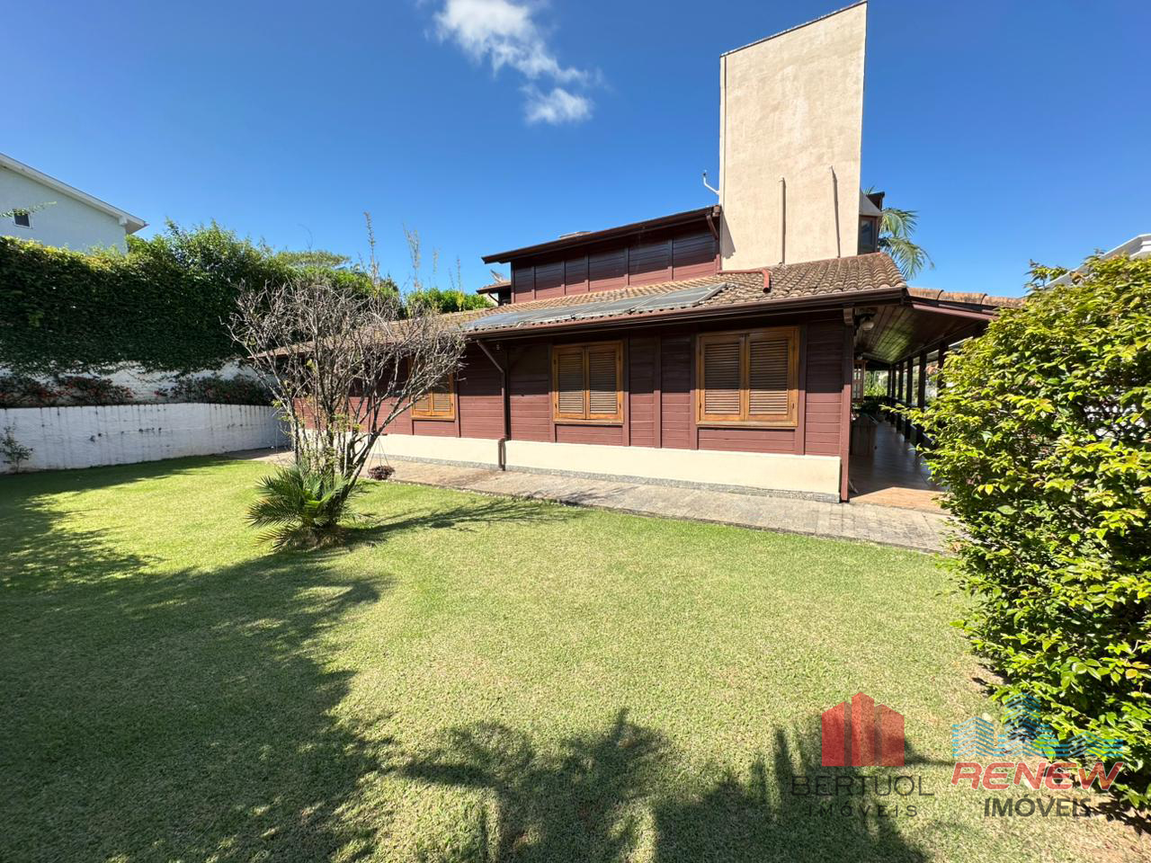O imóvel conta com quatro dormitórios, sendo duas suítes, incluindo uma suíte master no piso superior com closet, hidromassagem e varanda privativa. Possui três salas amplas com pé direito alto, lareira e excelente iluminação natural, além de lavabo e banheiro adicional com hidromassagem. A cozinha americana com piso em porcelanato é integrada e funcional, acompanhada de despensa, área de serviço e suíte de apoio. Toda a casa é avarandada, favorecendo ventilação cruzada e conforto térmico.