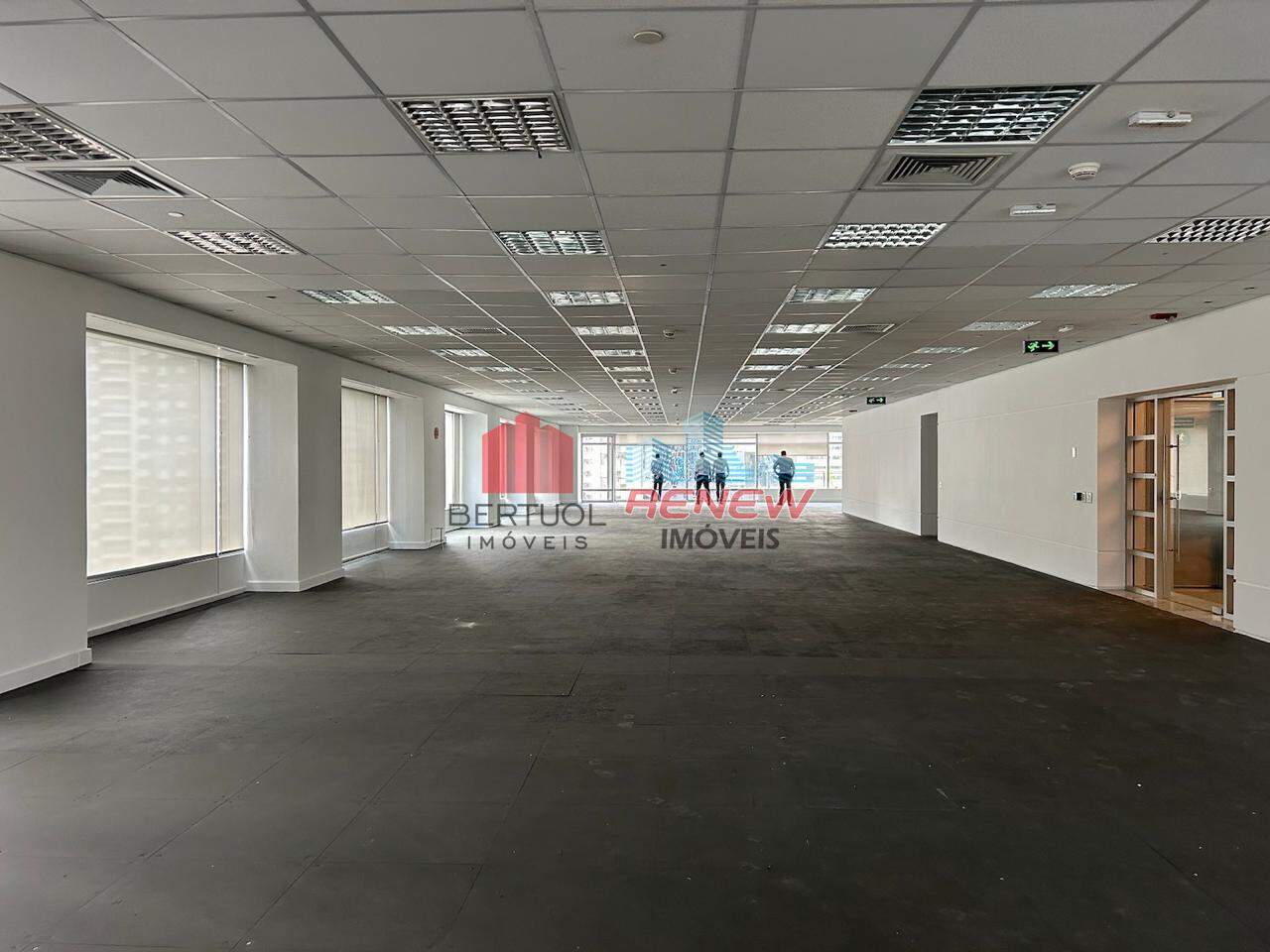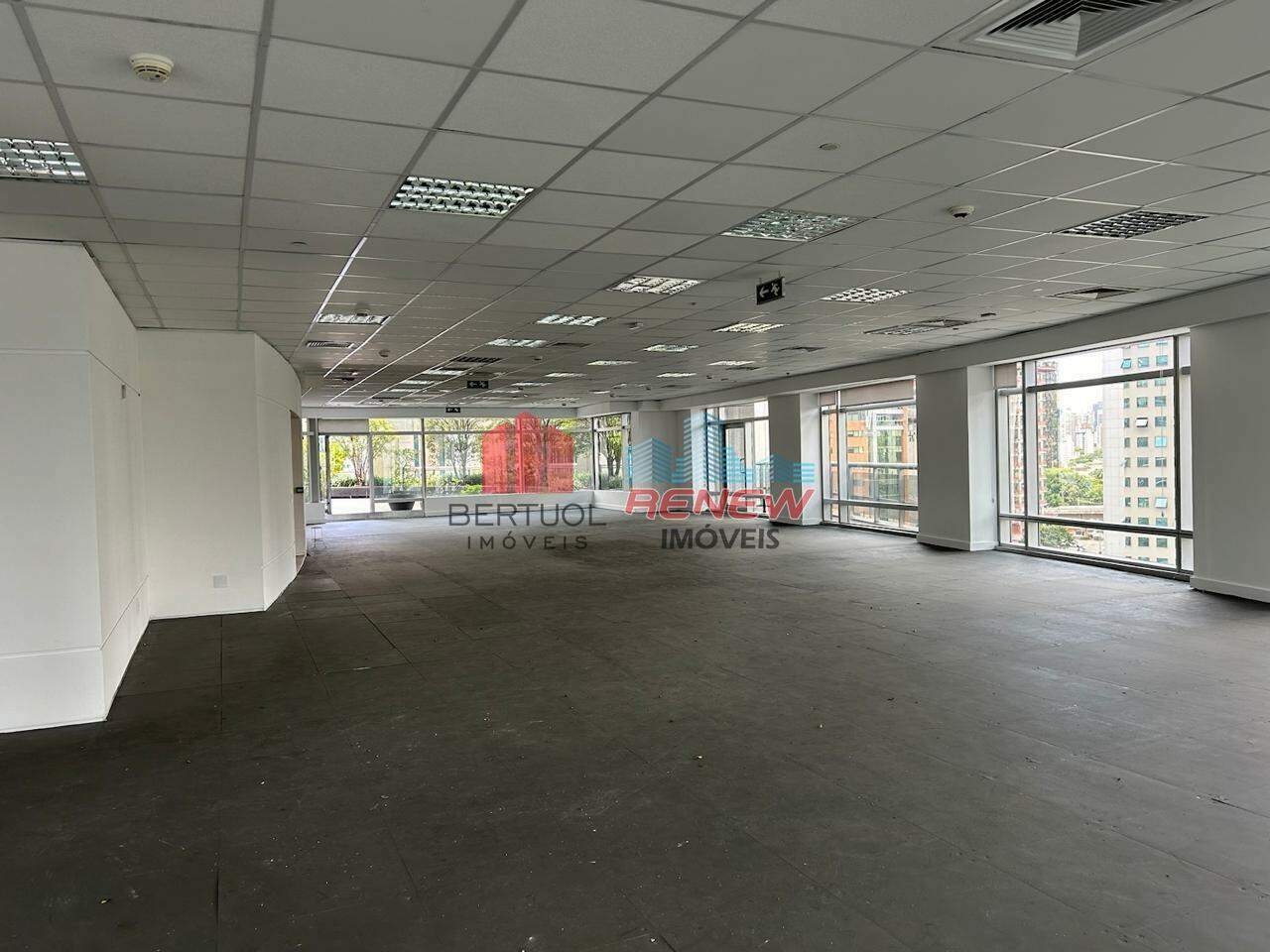 O ambiente conta com layout em vão livre, piso elevado, forro modular com luminárias embutidas, ar-condicionado central com sistema de chillers e ampla iluminação natural, permitindo total personalização conforme as necessidades da empresa.